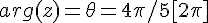 Le plus souvent, on utilise des valeurs d'arguments comprises entre -pi et +pi : ici -pi/5 (mais certains préfèrent choisir 9pi/5)