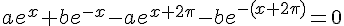 d)En utilisant la périodicité de f montrer que: quel que soit x réel, a(1-e^2pi)e^x+b(1-e^(-2pi))e^-x =0. J'ai réussi a le montrer.
