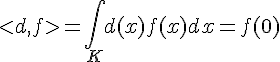 J'ai donc pensé raisonner par l'absurde, en prenant f dans D (de support borné K) et en supposant qu'il existe une fonction d localement sommable telle que <d, f > = <Dirac, f> = f(0).