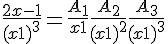 Et là, en suivant la méthode, j'arrive à déterminer un des coefficients en multipliant mon équation par (x+1)^3 et en remplaçant x par -1, ce qui me donne A_3 = -3.
