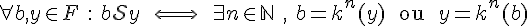 Quelque b,y € F b S y <=> il existe n € |N , b=k^n(y) ou y=k^n(b)