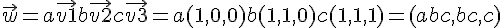 . Je trouve U=(a−b)(1,0,0)+(b−c)(1,0,0)+c( 1,1,1) ce qui montre que B est une famille génératrice de E et donc une base de coordonnées d'un vecteur U=(x,y,z) dans B étant a−b, b−c, et c respectivement.