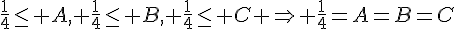 De nouveau, il n'est pas si difficile de montrer qu'il n'est pas possible d'avoir A=B=C=1/3, et même que si A+B+C=1, alors forcément A=0 ou B=0 ou C=0.