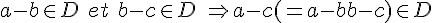 Donc clairement, les anneaux dans lesquels la relation est une relation équivalente sont ceux dans lesquels D est un sous-groupe (c'est juste une traduction algébrique de ce que l'on cherche).