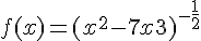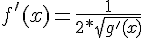 re: ici tu as une fonction de la forme f(x)=(g(x))^q avec g(x)=x²-7x+3 et q=-(1/2) la dérivée de f vaut : f'(x)=q*g'(x)*g(x)^(q-1)