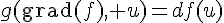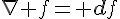 On précise notamment, que si appliqué à une simple fonction, le gradient se confond avec la dérivée extérieure :. Ok aussi.