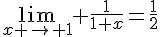 bah c'est une limite que x soit < 1 change quoi ? C'est la limite qui vaut 1/2