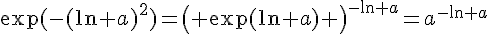 Par contre, vous parlez d'une simplification avec exp(ln(a)), mais ici comment l'utiliser ? Le carré sur le ln bloque pas mal pourtant.