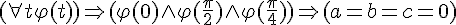 Pour t=Pi/4, on a alors a1*sqrt(2)/2+ a3*Pi/4=0