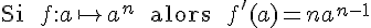 Quelle est la bonne réponse ? et y a t'il une formule particulière pour calculer la dérivée de a^n ? Merci