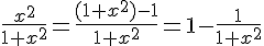 Comme x²/1+x² = x²+x²=2x², facile à intégrer, je suppose qu'il s'agit de x²/(1+x²) et que tu as oublié de respecter les règles d'écriture des calculs.