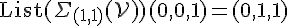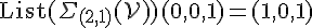 Si dans G(2,4) on va avoir des listes de dimensions à 4 nombres, dans G(1,3) elles seront à 3 nombres. Dans G(2,4) ces nombres seront compris entre 0 et 2, dans G(1,3) entre 0 et 1. Dans les deux cas sans considerer le vecteur nul dans le drapeau, sinon les listes seront de longueur 5 et 4.