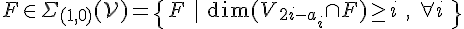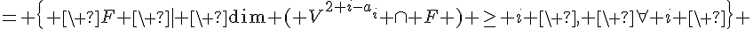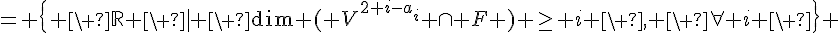 Ben si c'est exactement le problème et c'est exactement ce que tu es censé faire ici. On intersecte un espace de dimension k (F) avec un espace de dimension 1 (V_1), puis de dimension 2 (V_2), puis de dimension 3 (V_3),... puis de dimension n (V_n). Sachant que les V_1 est inclus dans V_2 lui meme inclus dans V_3 etc... et on note la liste des dimensions qu'on obtient. Puis on compare cette liste à (0,....,0, 1,2...,k) et on note les differences dans un multi-indice. C'est aussi bête que ca.Tu parles vaguement. Tu ne fais pas de liaison avec définition de variété de Schubert. Qui est celui qui ne sait pas que :