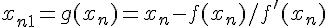 Les itérations : x(k+1)= x(k) - f(xk)/f'(xk) (équation de la tangente) .