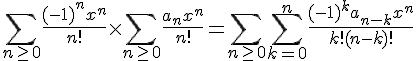 a aussi un rayon de convergence infini. Donc pour tout réel positif, le produit de ces deux séries converge et vaut :