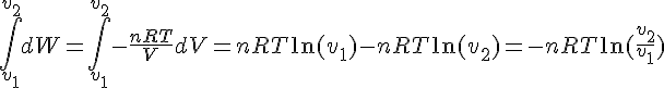 Ce que je ne comprends pas , c’est Pourquoi l’on note pour une transformation réversible : ∫dW=( on intègre de v2 à v1) ∫-PdV=-nRTln(v2-v1)