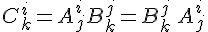 C et D sont différentes et correspondent aux deux multiplications matricielles entre A et B. En notation tensorielle, la multiplication tensorielle est commutative. Mais la multiplication matricielle demande une contraction: c'est le choix de l'indice qui permet de choisir l'ordre de la multiplication matricielle...