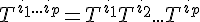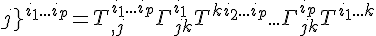 Je le fais seulement pour un tenseur de type (p,0), i.e. p fois covariant. La formule générale est sur wiki.