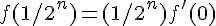 on remarque que f(0)=0 et je calcule pour x différent de 0 lim((f(x+h)-f(x))/h en posant f(x) = 2nf(x/2n) quel que soit n, pour essayer de montrer que f'(x) = f'(0) mais j'ai besoin me semble-t-il de la continuité de f' en 0.