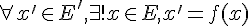 [ Chaque élément de E' est atteint, a au moins un antécédent. ]