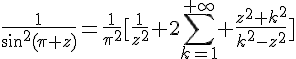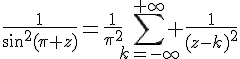 Cette identité est due à Euler et est très raisonnable si on remarque que chacun des membres de l'égalité a pour pôles exactement les entiers, tous avec résidus un (pour un déduire une preuve, il faut travailler un peu plus mais c'est au moins un moyen de se rappeler de la formule).