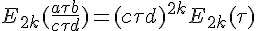 La propriété essentielle des séries d'Eisenstein est la modularité:est une fonction modulaire de poids 2k, ce qui signifie que pour tout a,b,c,d entiers tels que ad-bc=1, on a