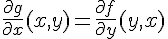 je dois calculer les dérivées partielles de g(x,y) = f(y,x) f étant C¹ sur R² (l'énoncé ne précise pas mais je suppose que f est à valeurs dans R).