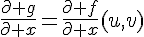 Dans mon cours j'avais un exemple avec un changement de variable nécessaire pour résoudre une équation aux dérivées partielles g(u,v)=f(u+av,u+bv)=f(x,y) qui donnait :