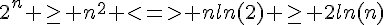 2/ Déterminer un entier naturel n0 tel que pour tout entier n ≥ n0 , 2^n ≥ n². Après avoir donné la valeur de n0, on n'omettra pas de prouver l'inégalité souhaitée.