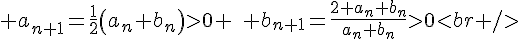 an+1= (an+bn)/2 et 1/bn+1= 1/2*(1/an+1/bn)