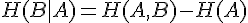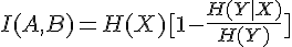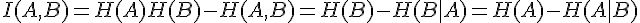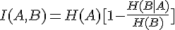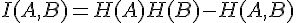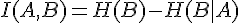 Quelques lectures plus tard, je tente une autre approche et je postule : I(A, B), c'est la différence entre l'entropie de B et l'entropie de B sachant A. Soit :