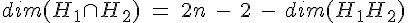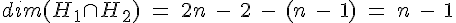 J’ai essayé de différencier des cas mais j’ai du mal. Intuitivement, j’ai essayé de voir ce qu’il se passait en dimension 2. Si l’on prend deux droites vectorielles qui n’ont qu’un point d’intersection, la dimension de la somme vaut 2 (donc n ici), si les deux droites sont confondues, la dimension de la somme vaut 1 (n-1), et je bloque dans le cas où les deux droites sont colinéaires mais non confondues. Que signifie l’espace somme dans ce cas ? C’est bien censé former un sev mais je ne vois pas lequel...