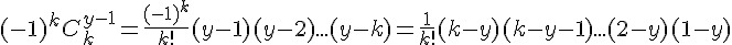 Par contre, je en connais pas le sens des coefficients binomiaux pour des entiers négatifs. Généralement, on les considère comme nuls.