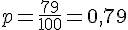 On a interrogé 100 personnes de plus de 15 ans sur leurs opinions sur le dérèglement climatique. 79 personnes pensent que le dérèglement climatique est un fait réel. Soir p la proportion de personnes pensant que le dérèglement climatique est un fait réel :