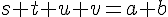 Je me suis penché sur un casse-tête, que je vous livre, j'ai quatre inconnues s,t,u et v,et cinq réels a,b,c,d et e.
