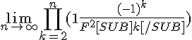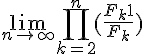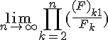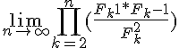 En admettant pour tout n appartenant au entier naturel : Fn−1*Fn+1 =F²n +(−1)n . On me demande de déduire l'existence et la valeur de lim quand n tend vers + l'inf de n∏k=2