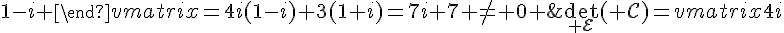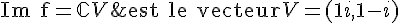 Si f est une transformation linéaire sur C² qui vérifie f(4i,-3) = f(1+i, 1-i) = (1+i, 1-i), montrez que vous pouvez en déduire immédiatement le rang de f, la dimension de son noyau et ses deux valeurs propres associées.