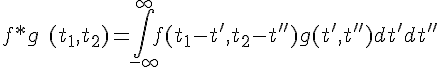 je suis en train de lire un livre en optique non linéaire et j'ai une question concernant le calcul de la susceptibilité non linéaire d'ordre 2 dans le domaine fréquentiel. Voici la formule dans le domaine temporelle, qui correspond au produit de convolution entre le fonction réponse du matériau et deux champs électriques E.