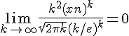 Je suppose que x et n ne dépendent pas de k. Les règles de calcul sur les fractions et les puissances permettent de réécrire la fraction comme une fraction qui tend vers 0 multipliée par (xne/k)^(k-2) dont la limite est évidente.