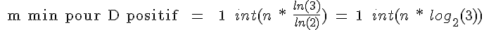 Qui donne pour n = 1 m_min = 1 et D = -1, pour n = 2 m_min = 2 et D = -5, pour n = 3 m_min = 6 et D = 37