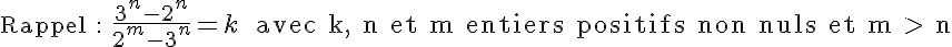 Pas étonnant que la valuation 2-adique deLe fait que d'ajouter un nombre à chaque termes de la première fraction ne changerait rien au caractère indivisible de la seconde. La remarque de gg0 "N'importe quel nombre vaut n'importe quel nombre non nul multiplié par k; à moins que k désigne un entier (mais il aurait fallu le dire), et ça ne marche pas." Par contre on a déterminé des choses pour m qui sont peut-être utiles.