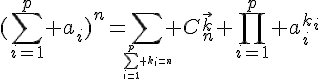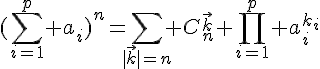 Dans le meme esprit, j'en profite aussi pour demander une formule pour calculer la puissance n-ieme de la somme de k termes, qui doit etre une formule du meme genre...