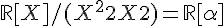 soit α une racine "inventée" pour ce polynôme, que l'on rajoute à ℝ, les élements sont de la forme a+b.α, l'addition est évidente, et pour la multiplication, on fait une multiplication de polynôme modulo α²+2α+2