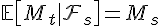 Montrons par passage à la limite à l'infini que, est une Martingale,