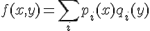 Intuitivement, quand on représente f(x,y) sur un graphe, elle est séparable (dans le sens que j'utilise ici...) quand cette fonction "s'aligne" le long des axes x et y...