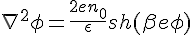 Ce dernier résultat constitue l'equation de Poisson-Boltzmann sur laquelle on peut baser l'electrostatique en solution.