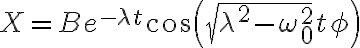 X(t)=B e^(-lambda *t) cos(racine (lambda²-Wo²)*t+phi)