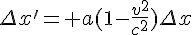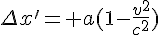 On en conclut que deux points de l'axe des x, séparés (relativement à K) par la distance 1, ont sur notre instantané la distance
