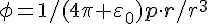 Considérez le potentiel (scalaire)créé par un dipôle électrique p