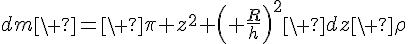 dm = (ro.pi.r².h).dr/3 (ceci étant issu du calcul de la masse volumique du cone), mais voilà, je trouve un poil à côté.